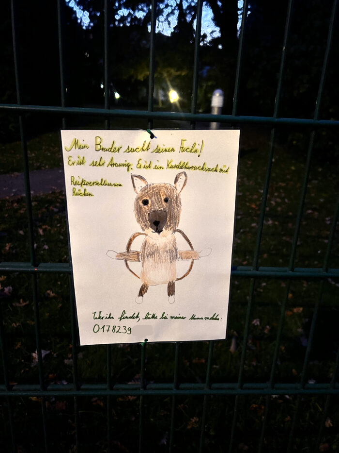 Verlorener Fuchs in Berlin – Trägt man ihn bald wieder bei sich? Verlorener Fuchs in Berlin – Trägt man ihn bald wieder bei sich? Entdeckt von Lina in Pankow. Bitte dieses Feld leer lassenNOTESLETTER Für Dich zusammengestellt: Die Crème de la Crème seriöser Hauptstadt-Notizen. Ja, ich will dabei sein und akzeptiere die Datenschutzerklärung Fast geschafft! Prüfe deinen Posteingang oder Spam-Ordner, um dein Abonnement zu bestätigen. Leave a comment FacebookXPinterestE-MailWhatsApp
